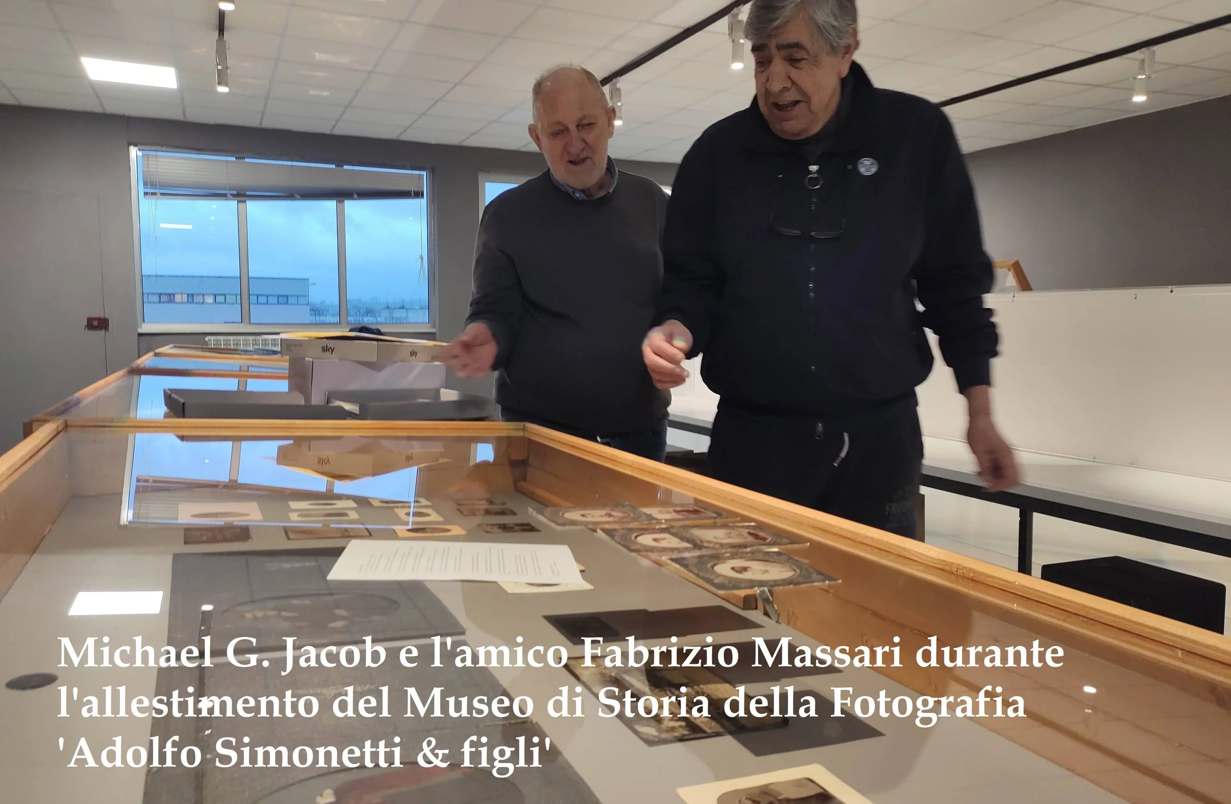 Nato a Liverpool nel 1948 e da molti anni residente a Spoleto, Michael G. Jacob è stato un apprezzato insegnante di inglese e, insieme alla moglie Daniela De Gregorio, autore di successo sotto lo pseudonimo Michael Gregorio, con libri pubblicati da Faber & Faber e poi da Einaudi, tradotti in numerosi Paesi. Grande collezionista e studioso di fotografia antica, ha dedicato saggi alla storia delle tecniche e dell’immaginario fotografico ottocentesco. Con il suo amico Fabrizio Massari di Matelica coltivava da tempo il sogno di creare un Museo della Storia della Fotografia, progetto che consideravano un atto di condivisione e tutela di una passione comune. In occasione dell’inaugurazione della sede museale e delle attività di Bottega Immagini — pochi giorni prima della sua scomparsa — volle con gioia far leggere ai presenti una sua lettera, testimonianza affettuosa del suo entusiasmo e del suo legame profondo con quel progetto.